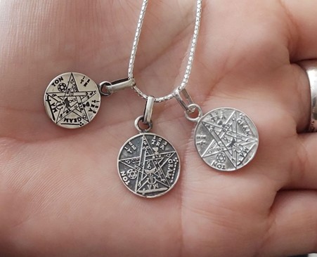 النجمه الخماسيه الفضيه و رموز الاسم الأعظم التيتراجراماتون الكامله للدفاع النفسي الروحي من الكيانات السفليه و الهجمات الطاقيه ، تكون ملازمه للمبتديء الغنوصي في كل الاوقات للدفاع عن الجسد المادي و الاجساد الشمسيه .